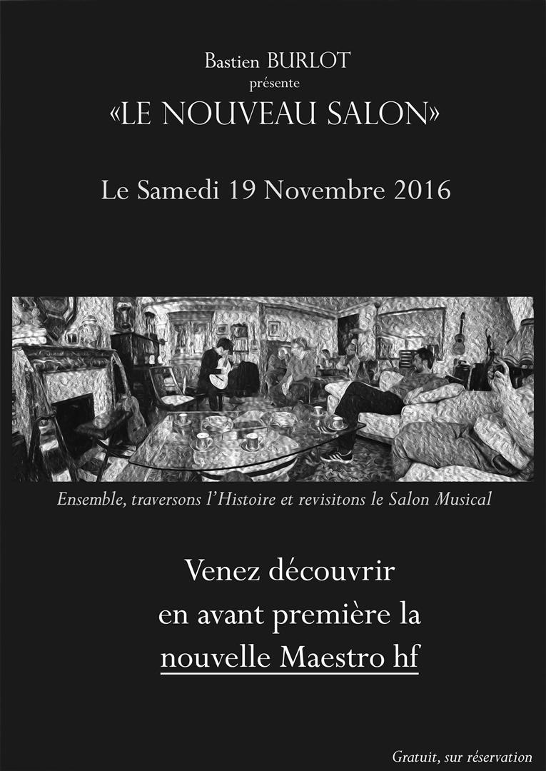 C'est avec joie que je vous invite au 8ème Nouveau Salon qui se déroulera le samedi 16 décembre à Paris dans les conditions privilégiées que certaines et certains d'entre vous (dont plusieurs devenu(e)s habitué(e)s!) ont déjà pu apprécier lors des précédentes éditions et qui représentent désormais la marque de fabrique de cet événement...Simplicité, rencontres, découvertes, partage...En un mot Plaisir autour la même passion qu'est la guitare de concert sous toutes ses facettes !
